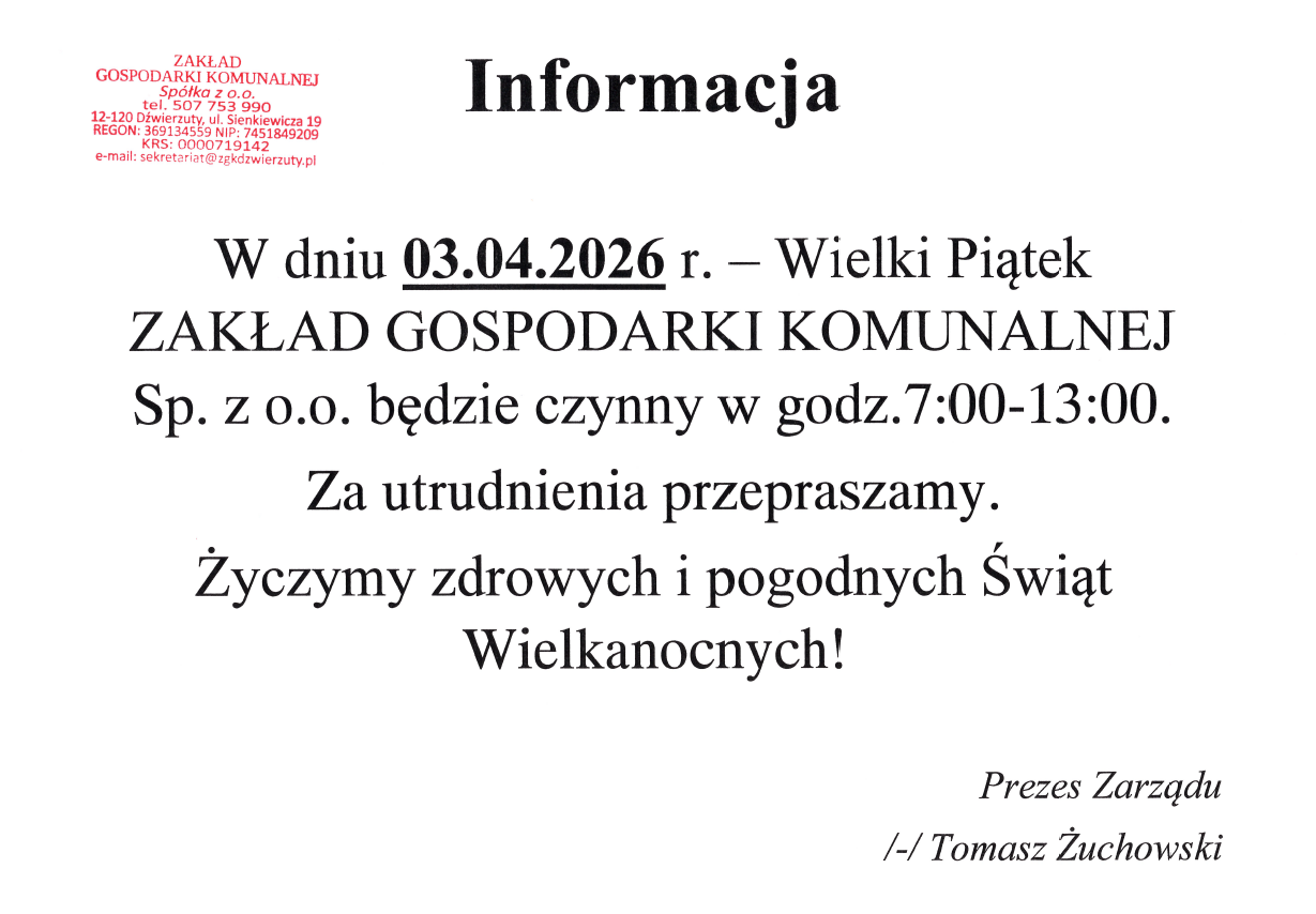 Zakład Gospodarki Komunalnej w Dźwierzutach Spółka z ograniczoną odpowiedzialnością realizuje projekt finansowany z funduszy europejskich.